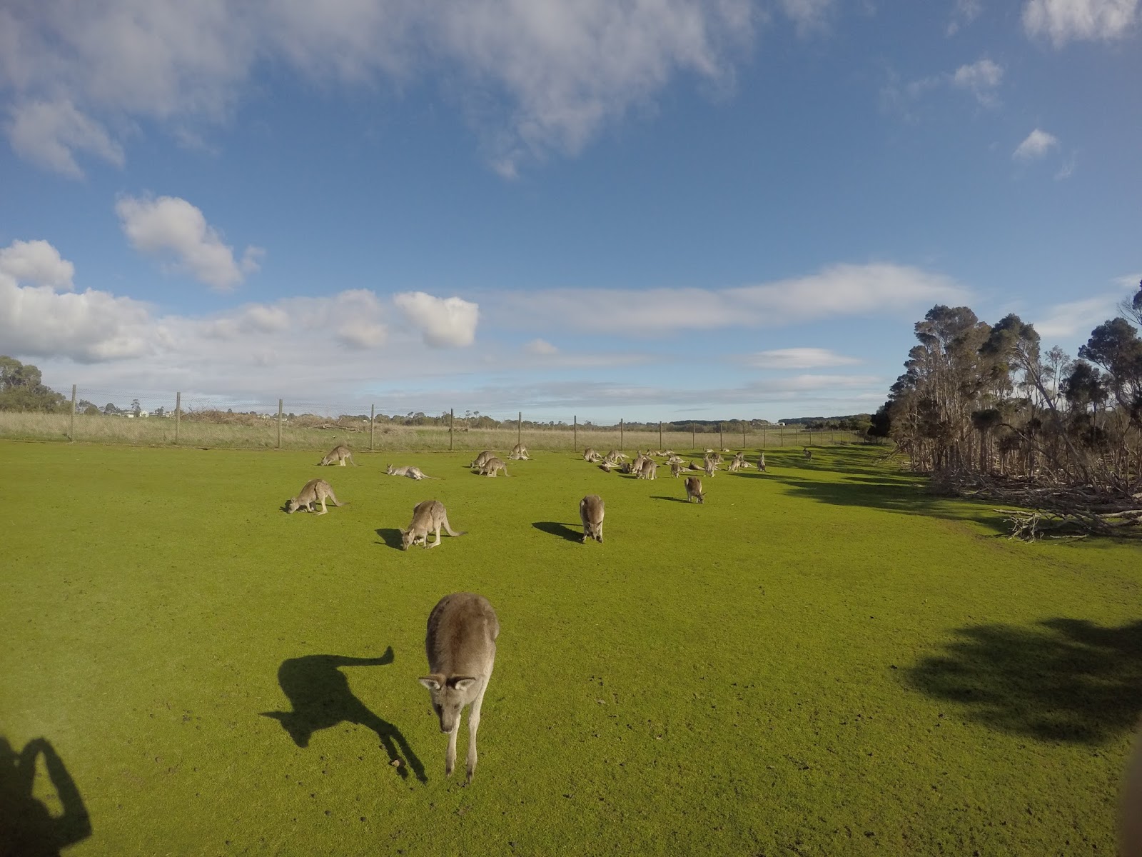 Ese día el objetivo era llegar a Cowes (a 197 km), visitando Phillip Island. Tremendo: visitamos una especie de "wild park" donde estuvimos rodeados de decenas de canguros y otros parecidos (Pademelons y Wallabies), y tambien vimos de cerca wombats, koalas y el diablo de Tasmania.